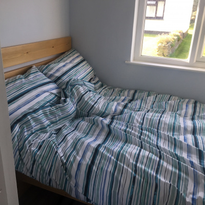 The bedroom has a 4ft, small double bed and the lounge has a small double sofa bed.